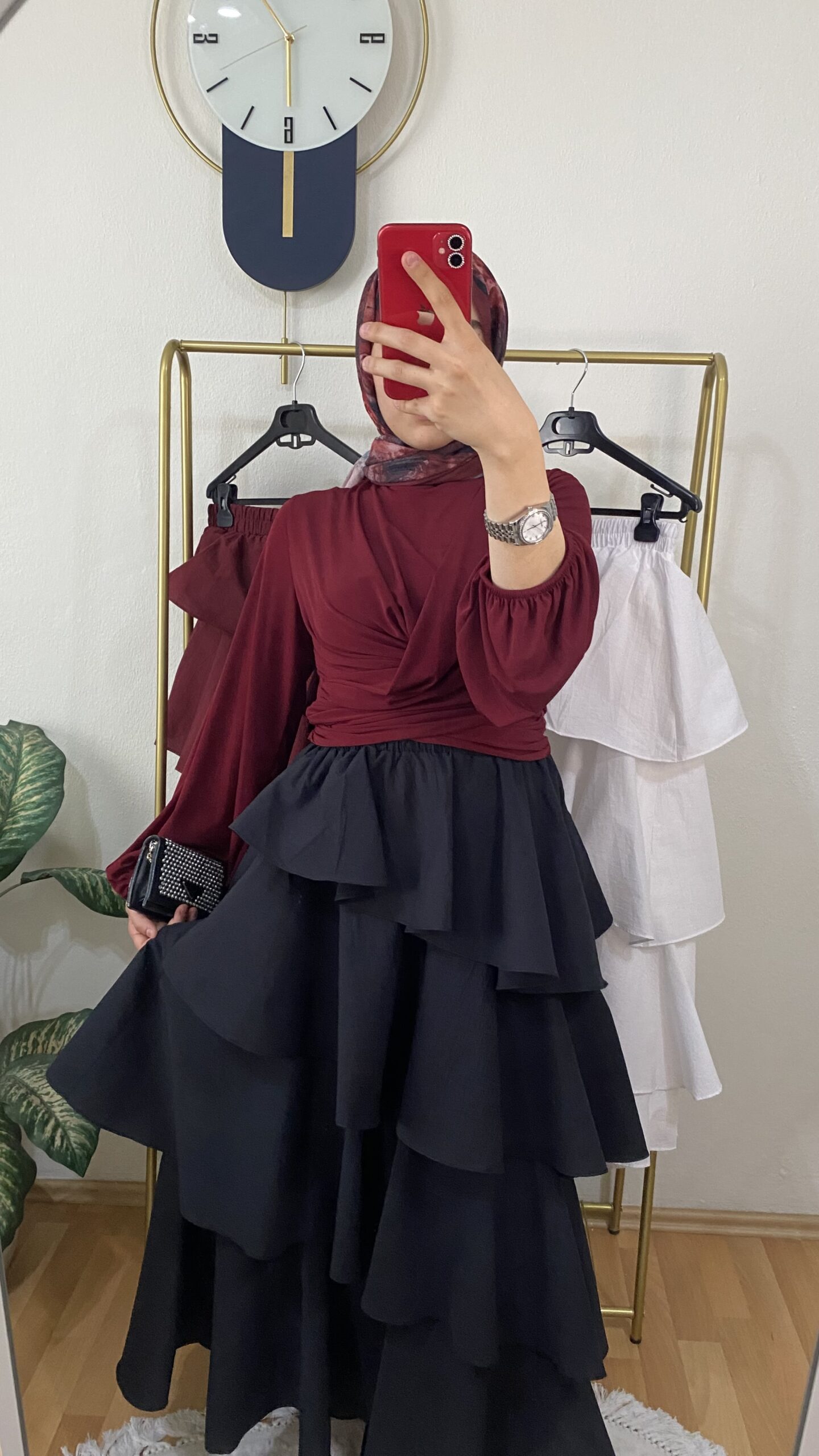 Volanlı Kat Kat Etek Siyah